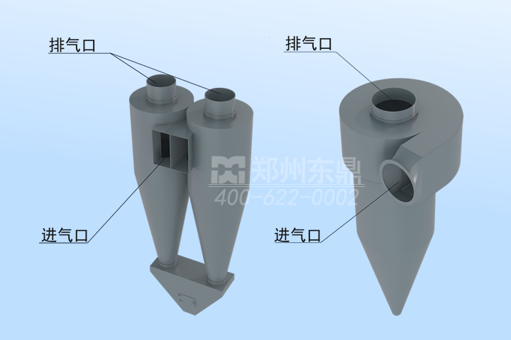 高效旋風(fēng)除塵器是利用旋轉(zhuǎn)氣流所產(chǎn)生的離心力將塵粒從合塵氣流中分離出來的除塵裝置。旋風(fēng)除塵器一般用于捕集5-15微米以上的顆粒.除塵效率可達(dá)80%以上,近年來經(jīng)改進(jìn)后的特制旋風(fēng)除塵器,其除塵效率可達(dá)85%以上。旋風(fēng)除塵器結(jié)構(gòu)由筒體、錐體、進(jìn)氣管、出風(fēng)管、和排灰管等組成。其工作原理如下:旋轉(zhuǎn)氣流的絕大部分沿器壁自圓簡體,呈螺 旋 狀由上向下向圓錐體底部運(yùn)動,形成下降的外旋含塵氣流,在強(qiáng)烈旋轉(zhuǎn)過程中所產(chǎn)生的離心力將密度遠(yuǎn)遠(yuǎn)大于氣體的塵粒甩向器壁,塵粒一旦與器壁接觸,便失去慣 性力而靠入口速度的動量和自身的重力沿壁面下落進(jìn)入集灰斗。旋轉(zhuǎn)下降的氣流在到達(dá)圓錐體底部后,沿除塵器的軸心部位轉(zhuǎn)而向上,形成上升的內(nèi)旋氣流,并由除 塵器的排氣管排出。自進(jìn)氣口流人的另一小部分氣流,則向旋風(fēng)除塵器頂蓋處流動,然后沿排氣管外側(cè)向下流動,當(dāng)達(dá)到排氣管下端時(shí),即反轉(zhuǎn)向上隨上升的中心氣 流一同從誹氣管排出,分散在其中的塵粒也隨同被帶走。