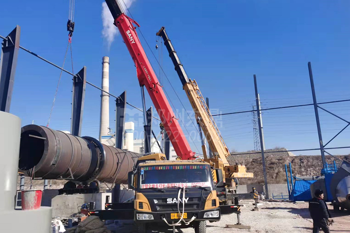 煤泥烘干機(jī)主滾筒吊裝作業(yè)